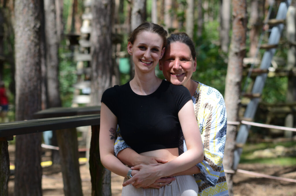 Für Jazz Woge war die Fortbildung ein logischer Schritt, erzählt sie, während ihre Tocher Lara neben ihr auf der Holzbank des Klettergartens sitzt. Vor dreizehn Jahren diagnostizierten die Ärzte bei der damals neunjährigen Lara einen Knochentumor und versetzten die Familie in den Ausnahmezustand. „Nach der OP ist Mia dann total ausgerastet und hat um sich geschlagen“, erinnert sich Jazz Woge. Spätestens jetzt wusste sie, dass sie Hilfe benötigt. „Beate Danlowski hat uns auf viele Arten unterstützt, sie hat mir zugehört, Geld für die Kinder organisiert. Und meine beiden Kinder Mia und Ole sind in die Geschwistergruppe gegangen“, sagt sie.